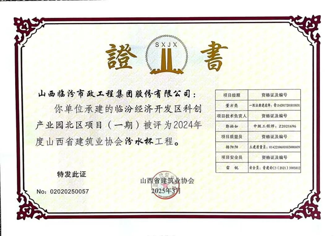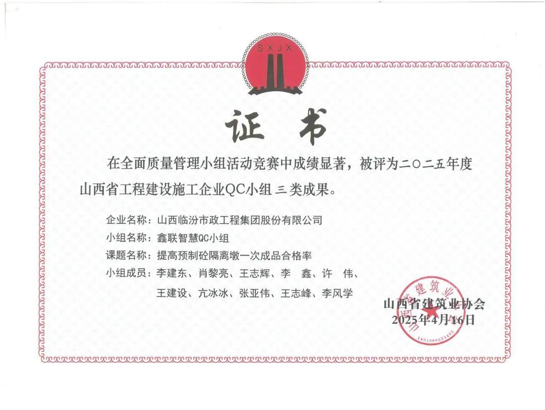 近日,山西省建筑業(yè)協(xié)會、山西省市政公用事業(yè)協(xié)會相繼公布了2024年度山西省建筑業(yè)協(xié)會汾水杯工程評價名單、2025年度山西省市政公用行業(yè)工程建設(shè)QC小組活動成果名單、2025年度質(zhì)量管理小組活動成果名單多項獲獎名單,集團(tuán)獲評汾水杯工程1項、QC成果獎24項,其中一類QC成果5項、二類QC成果10項、三類QC成果9項。