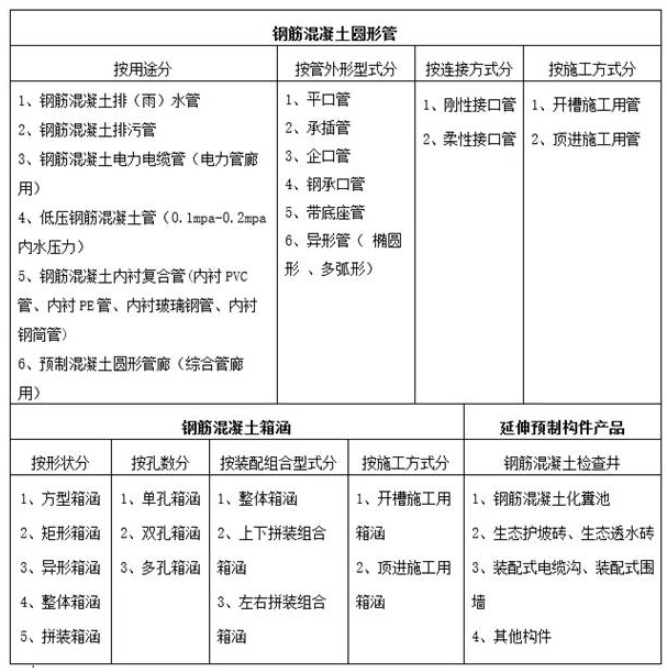 鋼筋混凝土管涵及延伸產(chǎn)品體系從下表可見。