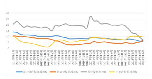 2018年1-6月份,全國固定資產(chǎn)投資(不含農(nóng)戶)297316億元,同比增長(zhǎng)6%,增速比1-5月份回落0.1個(gè)百分點(diǎn)。全國房地產(chǎn)開發(fā)投資55531億元,同比名義增長(zhǎng)9.7%,增速比1-5月份回落0.5個(gè)百分點(diǎn)。從上半年情況看,基礎(chǔ)設(shè)施建設(shè)在壓縮,對(duì)靠投資拉動(dòng)的混凝土與水泥制品行業(yè)帶來極大沖擊,但房地產(chǎn)投資增速和制造業(yè)投資增速保持增長(zhǎng)(如圖1所示),再加上隨后央行推出促進(jìn)市場(chǎng)流通性的貨幣政策,為實(shí)體經(jīng)濟(jì)優(yōu)化及高質(zhì)量發(fā)展助力。