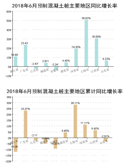 圖5 上半年全國主要地區(qū)混凝土預(yù)制樁生產(chǎn)增長(zhǎng)情況